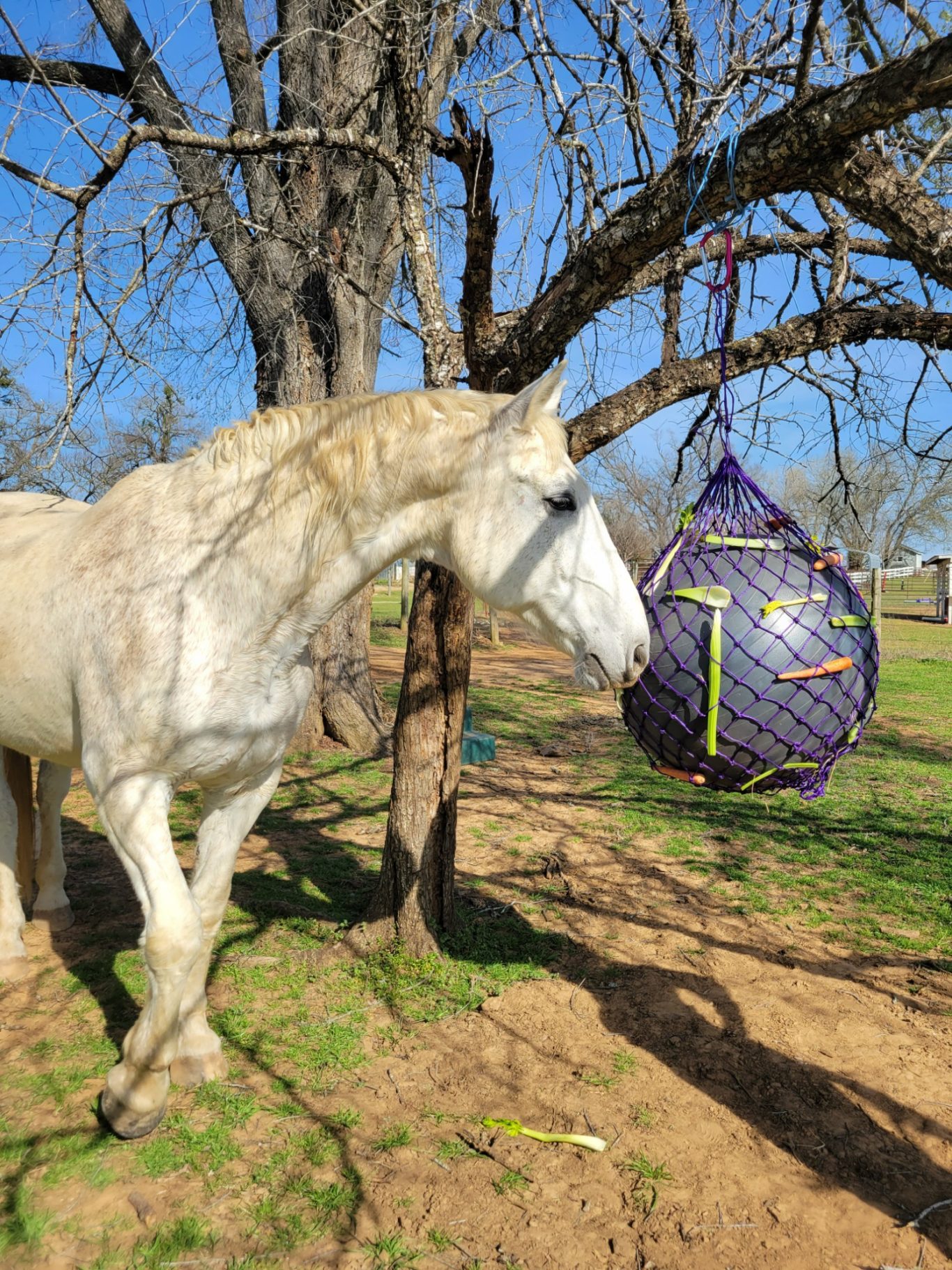 Presley is a sweet and fancy boy. He isn't a horse that can be ridden, but he can sure stand for a bath or some good grooming! He's a big fan of suds and has the shiniest coat. He's also just plain sweet and loving & is a favorite here at the ranch.