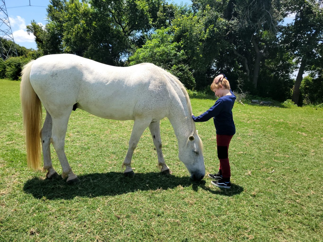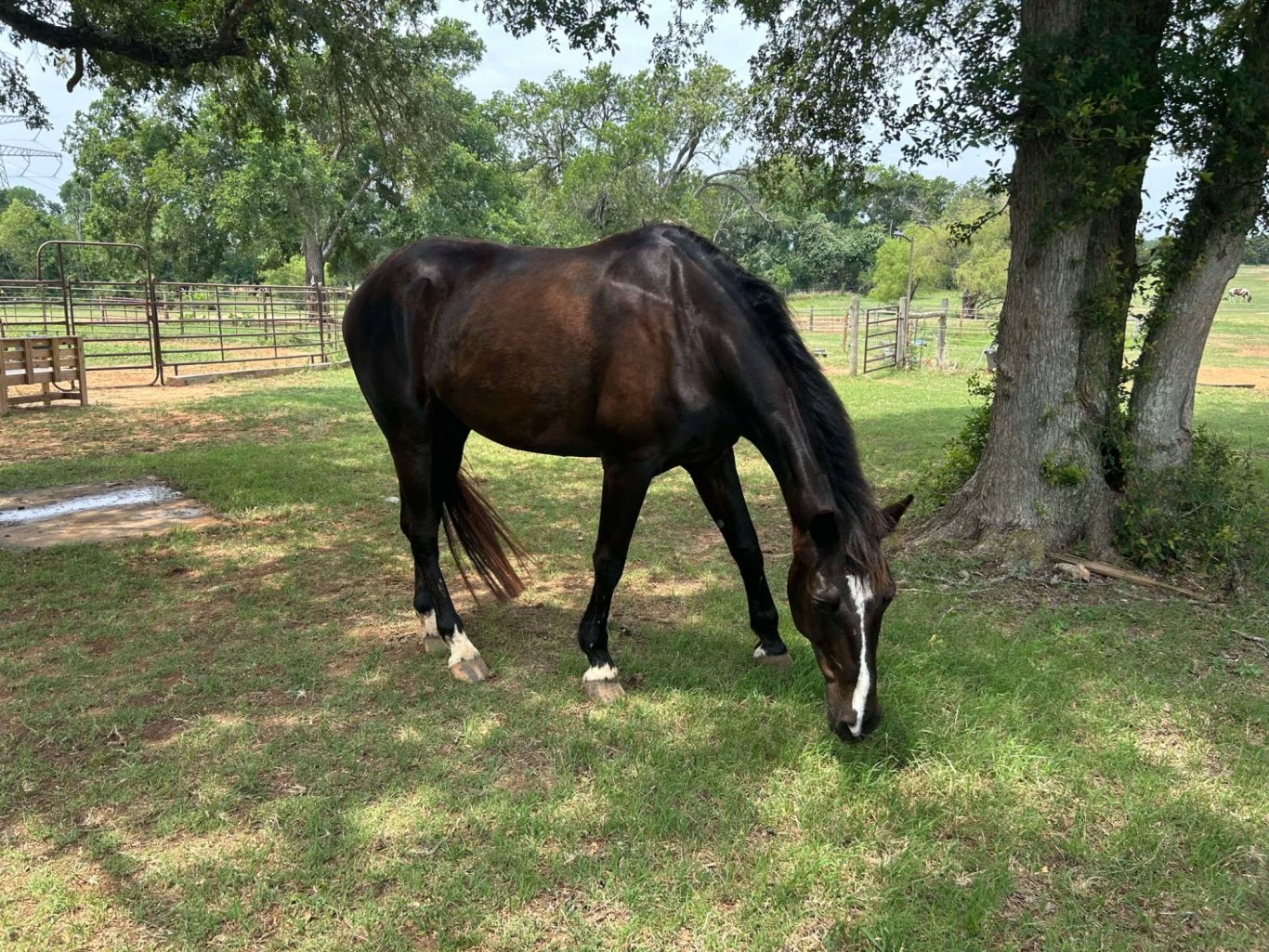 Shadow loves attention. He gives the very best horse hugs and usually prefers the company of humans over most of his horse friends. You'll find him hanging out by the barn or wandering around in the shade with his friend, Chowder.